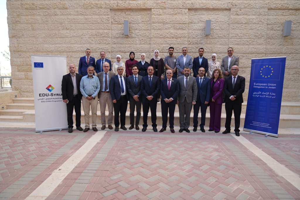 Prof. Al-Halhouli welcomed the visiting delegation and noted that EDU-SYRIA is one of the most prominent EU-funded educational initiatives, aimed at empowering Syrian refugees and Jordanian beneficiaries through higher education and vocational training opportunities.